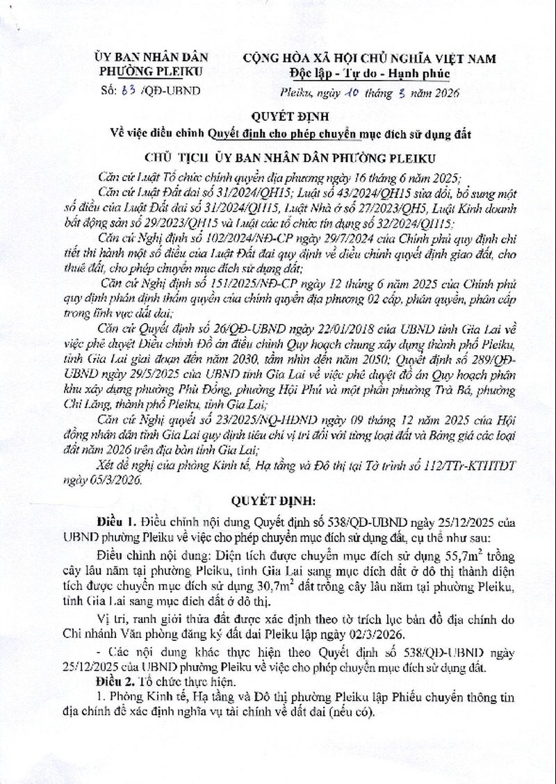 | Tiêu đề văn bản | Quyết định về việc điều chỉnh Quyết định cho phép chuyển mục đích sử dụng đất | ||