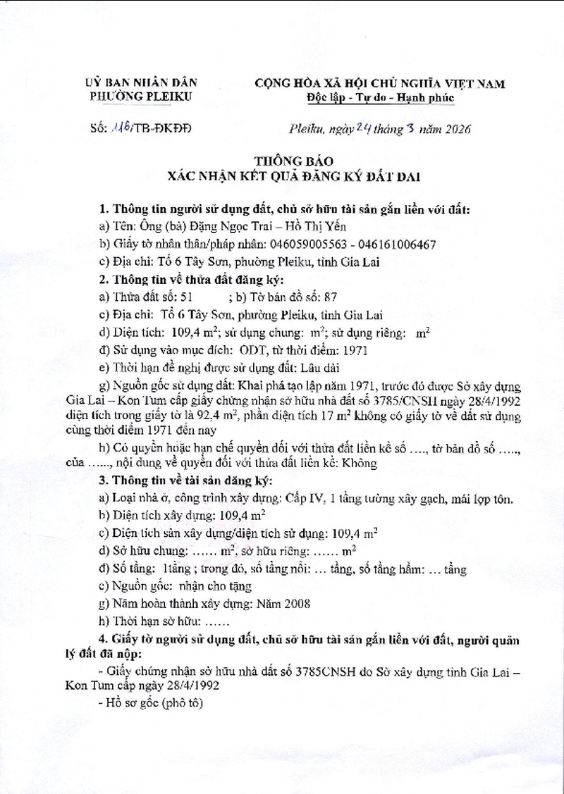 THÔNG BÁO KẾT QUẢ ĐĂNG KÝ ĐẤT ĐAI