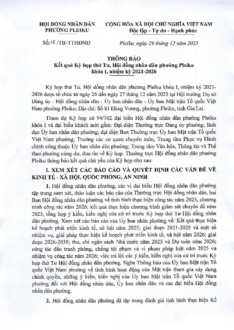 | Tiêu đề văn bản | Thông báo kết quả KH thứ Tư và các NQ ban hành sau KH | ||