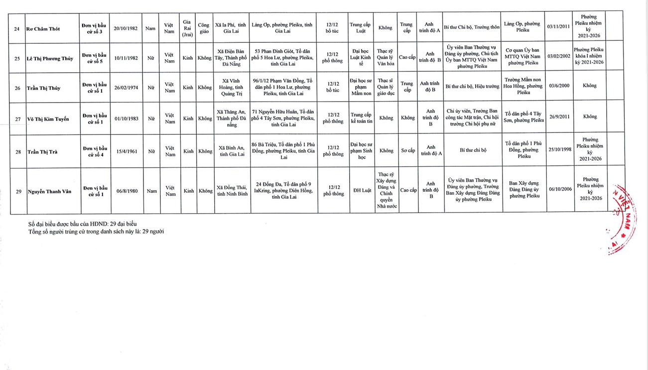 Công bố kết quả bầu cử và danh sách những người trúng cử đại biểu Hội đồng nhân dân phường Pleiku khóa II, nhiệm kỳ 2026 - 2031