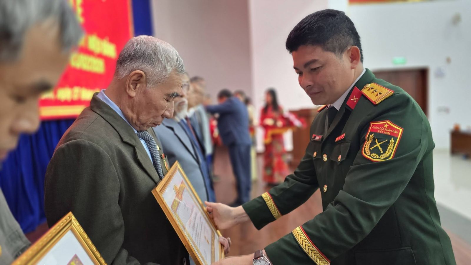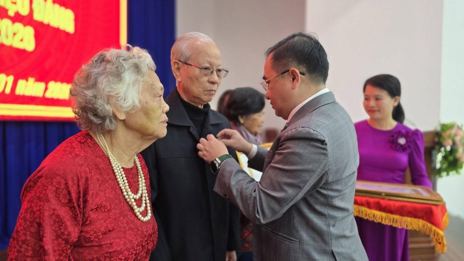 Đại diện các đảng viên được trao tặng Huy hiệu Đảng đợt này, đồng chí Nguyễn Hữu Khuê - đảng viên 60 năm tuổi Đảng bày tỏ niềm xúc động, vinh dự và tự hào khi được nhận phần thưởng cao quý của Đảng. Đồng chí khẳng định, mỗi Huy hiệu Đảng không chỉ là sự ghi nhận của Đảng đối với cá nhân mà còn là niềm vinh dự chung của gia đình, dòng họ và quê hương; đồng thời nhấn mạnh sẽ tiếp tục giữ vững phẩm chất người đảng viên cộng sản, sống gương mẫu, giáo dục con cháu, động viên thế hệ trẻ ra sức học tập, rèn luyện, tiếp nối truyền thống cách mạng của cha anh.
