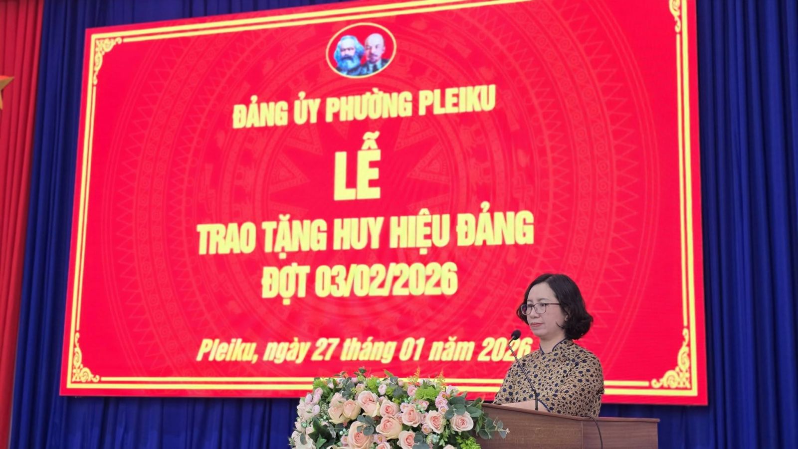 Sáng 27-1, Đảng ủy phường Pleiku (tỉnh Gia Lai) tổ chức Lễ trao tặng Huy hiệu Đảng đợt 3-2-2026 cho các đảng viên đang sinh hoạt tại các chi bộ trực thuộc Đảng bộ phường.
