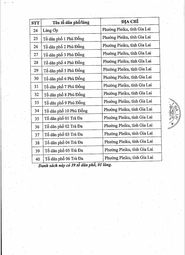 Danh sách 39 tổ dân phố và 01 làng đủ điều kiện xét tặng danh hiệu “Tổ dân phố văn hóa” năm 2025. (Chi tiết có trong file Thông báo và Danh sách đính kèm).
