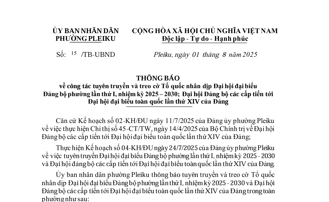 Kế hoạch Tổ chức Hội nghị đối thoại giữa Bí thư Đảng ủy phường với doanh nghiệp, hợp tác xã, nhà đầu tư trên địa bàn phường Pleiku năm 2025