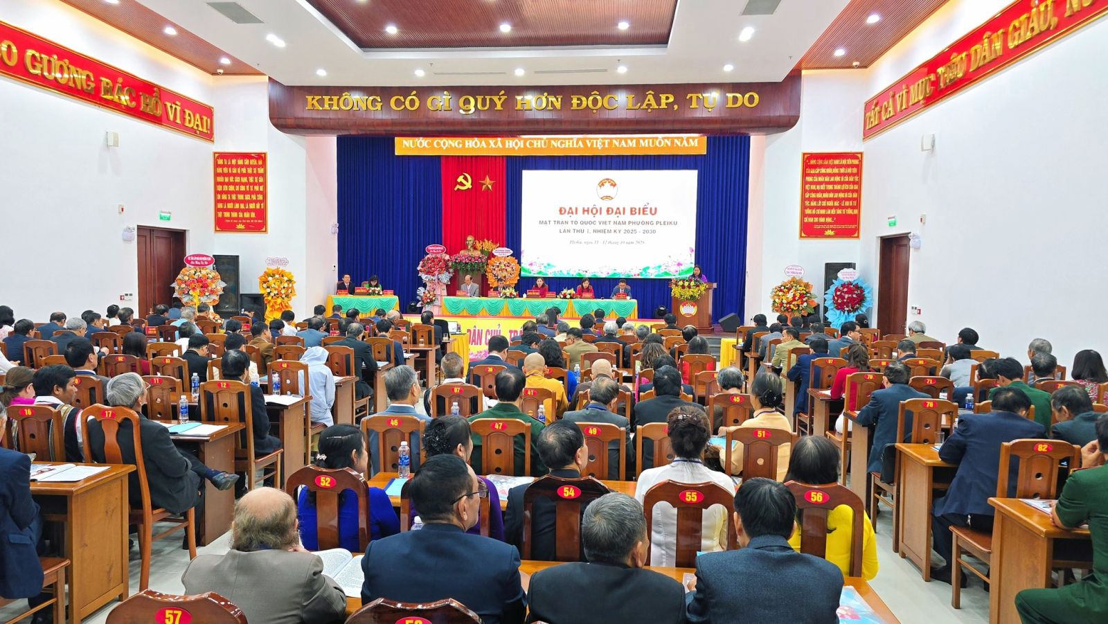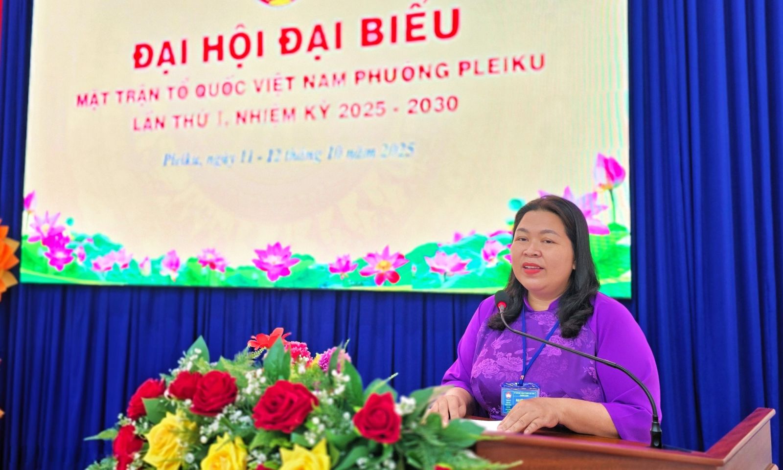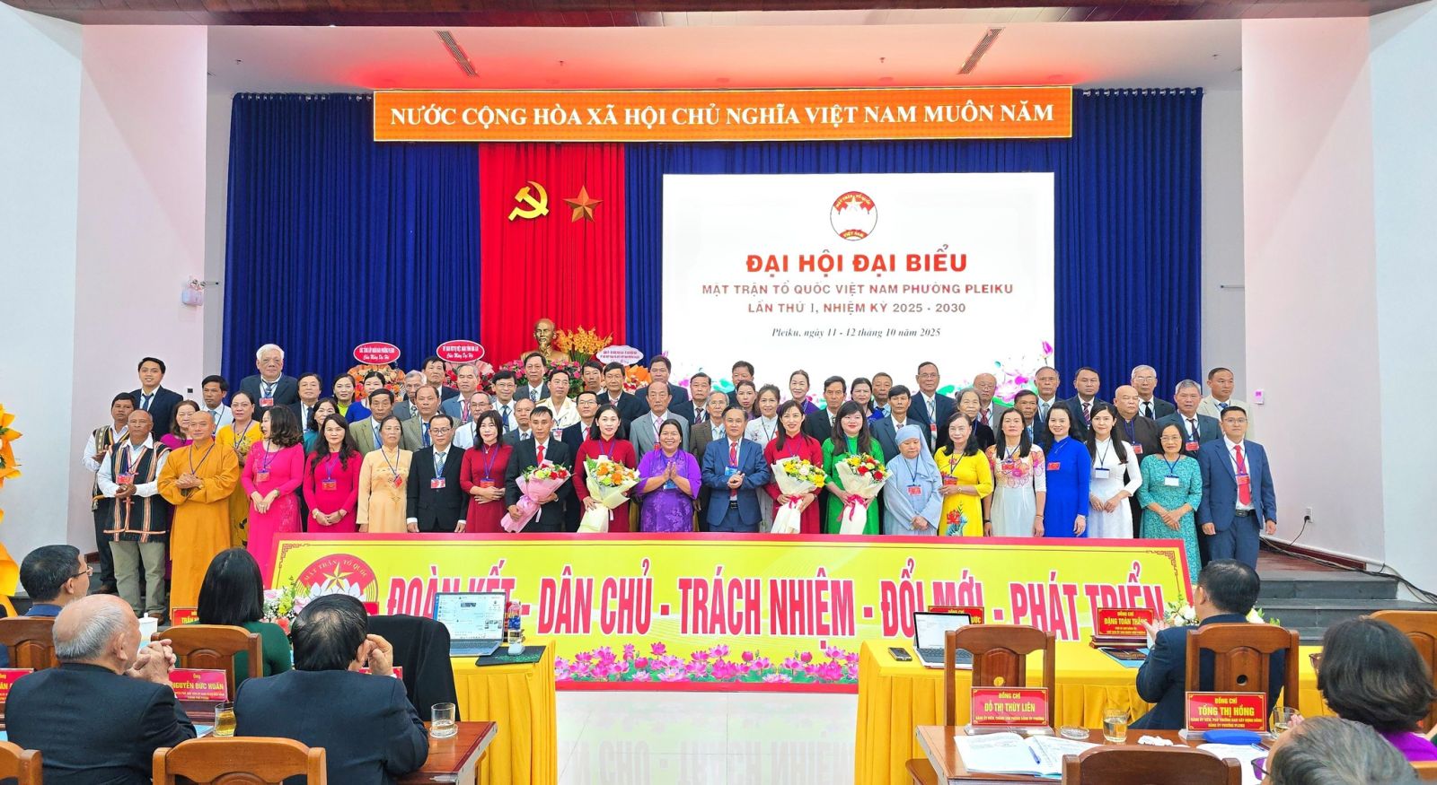 Trong 2 ngày 11 và 12-10, Ủy ban MTTQ Việt Nam phường Pleiku (tỉnh Gia Lai) tổ chức Đại hội đại biểu lần thứ I, nhiệm kỳ 2025-2030. Dự và chỉ đạo Đại hội có bà Hà Thị Giang Thảo-Tỉnh ủy viên, Phó Chủ tịch Ủy ban MTTQ Việt Nam tỉnh, Chủ tịch Hội Liên hiệp Phụ nữ tỉnh; ông Nguyễn Xuân Phước-Tỉnh ủy viên, Bí thư Đảng ủy, Chủ tịch HĐND phường Pleiku cùng 118 đại biểu đại diện cho các tầng lớp nhân dân, dân tộc, tôn giáo trên địa bàn.