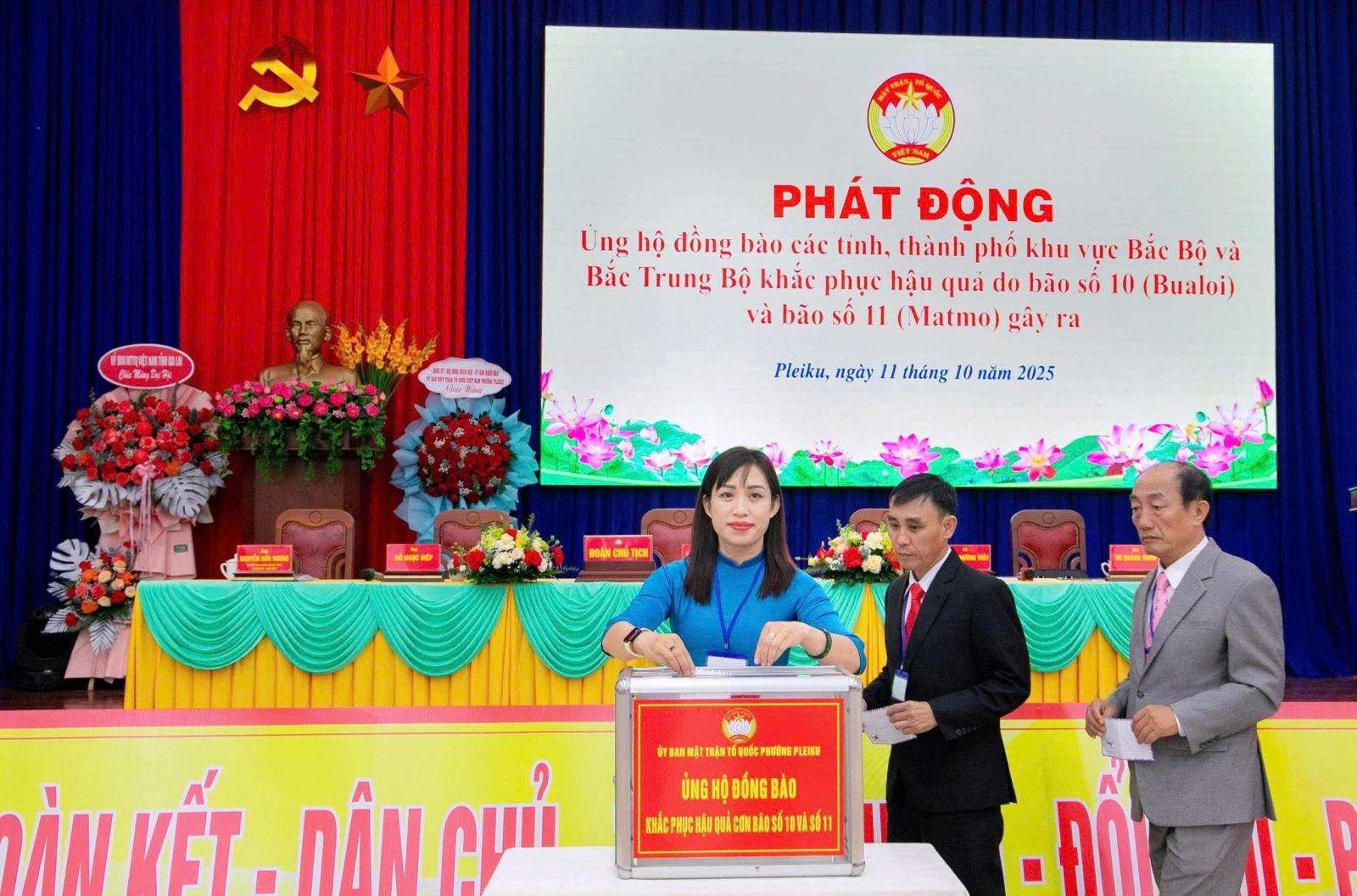 Phát huy tinh thần “Đoàn kết-Nhân ái-Hành động”, tại Đại hội, MTTQ phường Pleiku phát động quyên góp ủng hộ đồng bào vùng bão lũ Bắc Bộ và Bắc Trung Bộ, thu được hơn 16,7 triệu đồng. Trường Tiểu học, THCS và THPT Sao Việt cũng ủng hộ 174,4 triệu đồng nhằm chia sẻ khó khăn, giúp Nhân dân sớm ổn định cuộc sống.