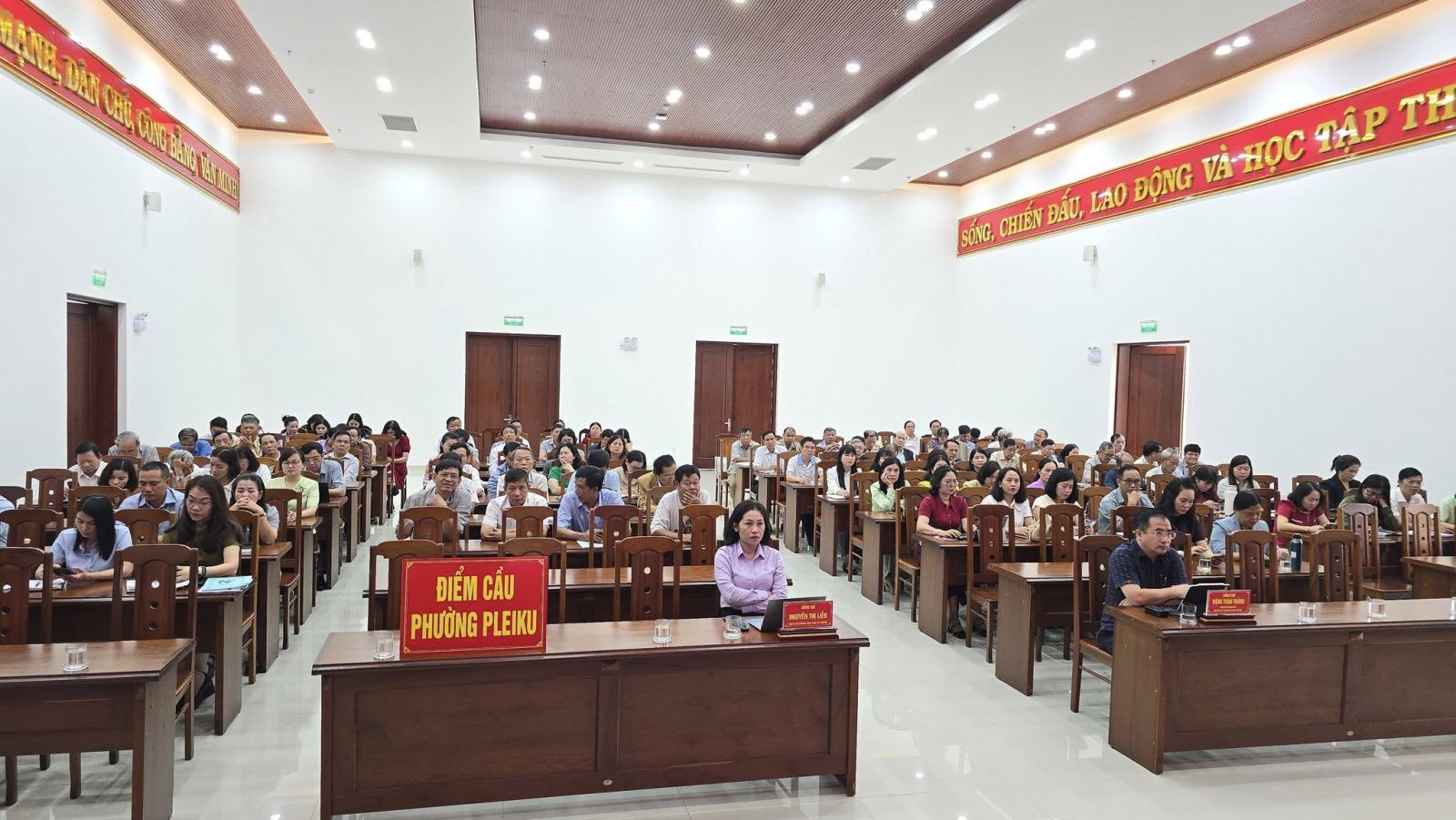 Sáng 16/9, Bộ Chính trị, Ban Bí thư tổ chức Hội nghị toàn quốc quán triệt, triển khai Nghị quyết số 59, 70, 71 và 72 của Bộ Chính trị. Tại phường Pleiku, gần 300 cán bộ, đảng viên tham dự ở 2 điểm cầu.