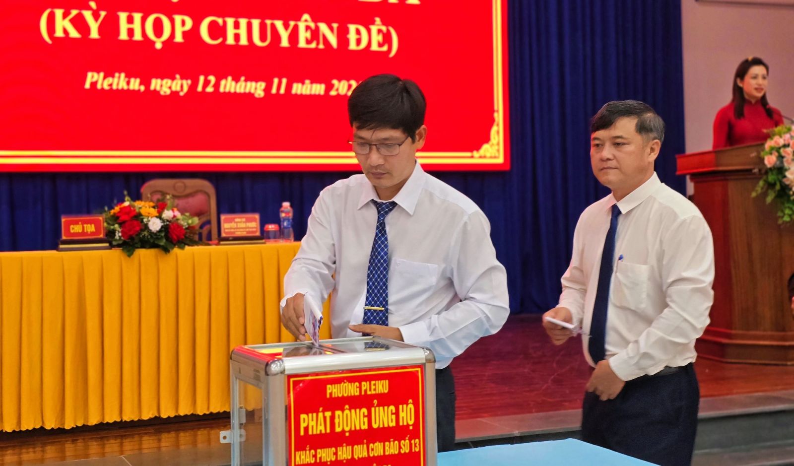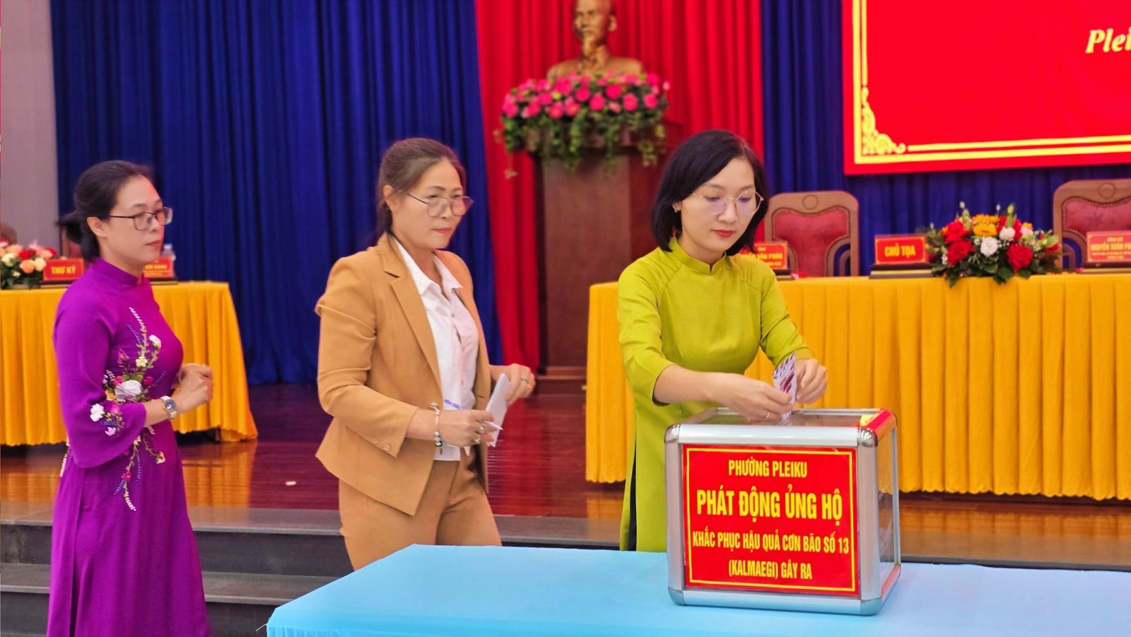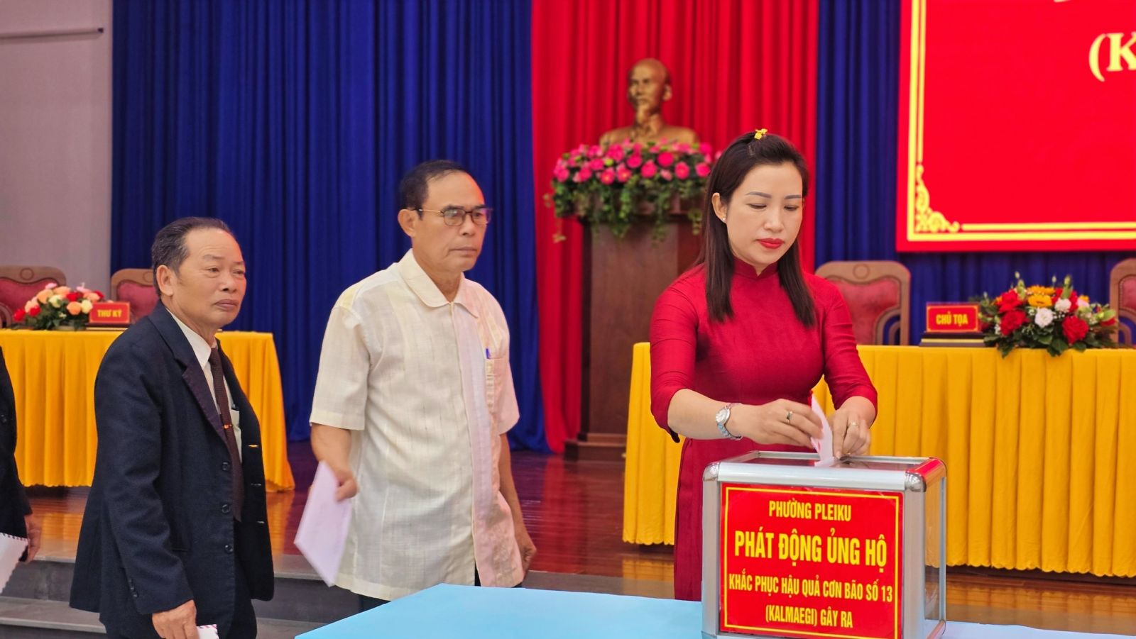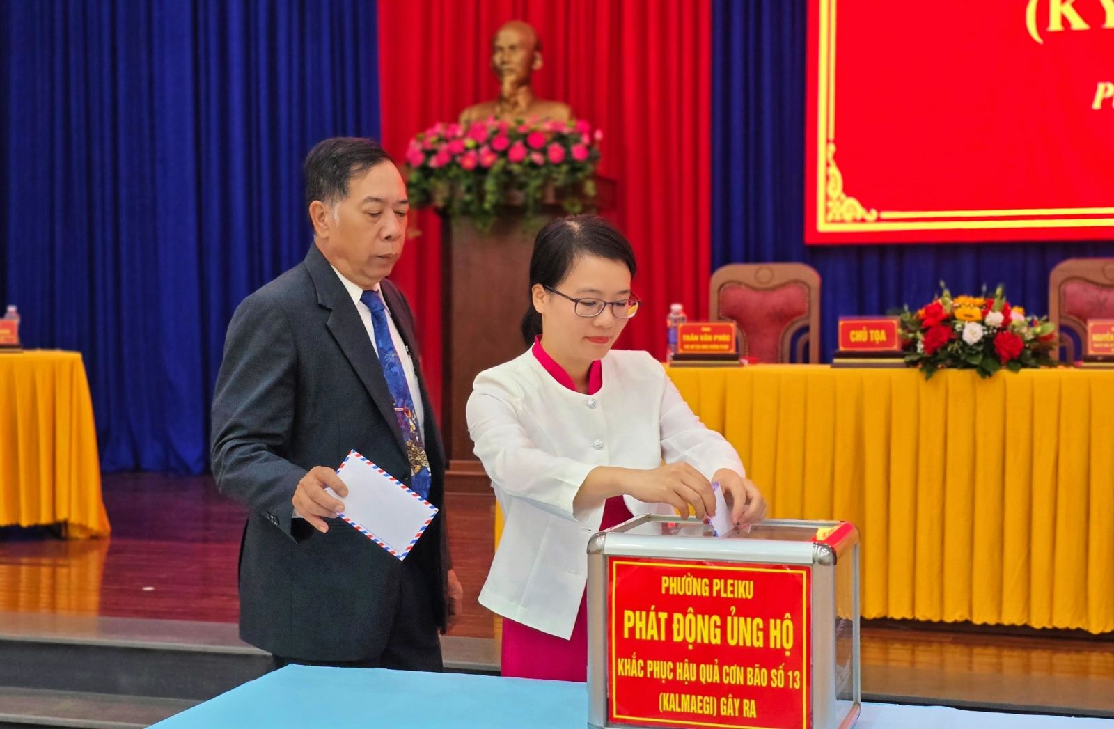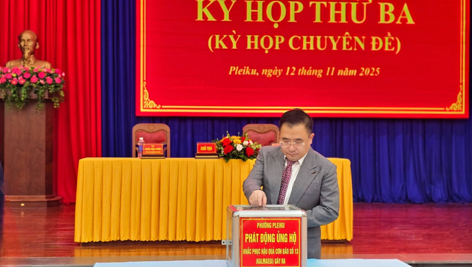 Nhằm kịp thời sẻ chia khó khăn với nhân dân các địa phương bị ảnh hưởng bởi cơn bão số 13 (Kalmaegi). Chiều 12-11, trước khi diễn ra Kỳ họp thứ Ba (chuyên đề) HĐND phường Pleiku khóa I, nhiệm kỳ 2021-2026, Ủy ban MTTQ Việt Nam phường Pleiku đã phát động quyên góp, ủng hộ đồng bào vùng bão. Theo đó, những ngày vừa qua, cơn bão số 13 với cường độ mạnh và sức tàn phá lớn của cơn bão đã gây ra thiệt hại lớn cho tỉnh Gia Lai với tổng thiệt hại kinh tế ước tính hơn 5.200 tỷ đồng. Với tinh thần “nhường cơm sẻ áo”, “một miếng khi đói bằng một gói khi no”, các đại biểu tham dự kỳ họp đã tích cực hưởng ứng, quyên góp được số tiền gần 10 triệu đồng. Toàn bộ số tiền ủng hộ sẽ được chuyển đến Ủy ban MTTQ Việt Nam tỉnh Gia Lai để kịp thời hỗ trợ đồng bào vùng bị thiệt hại.