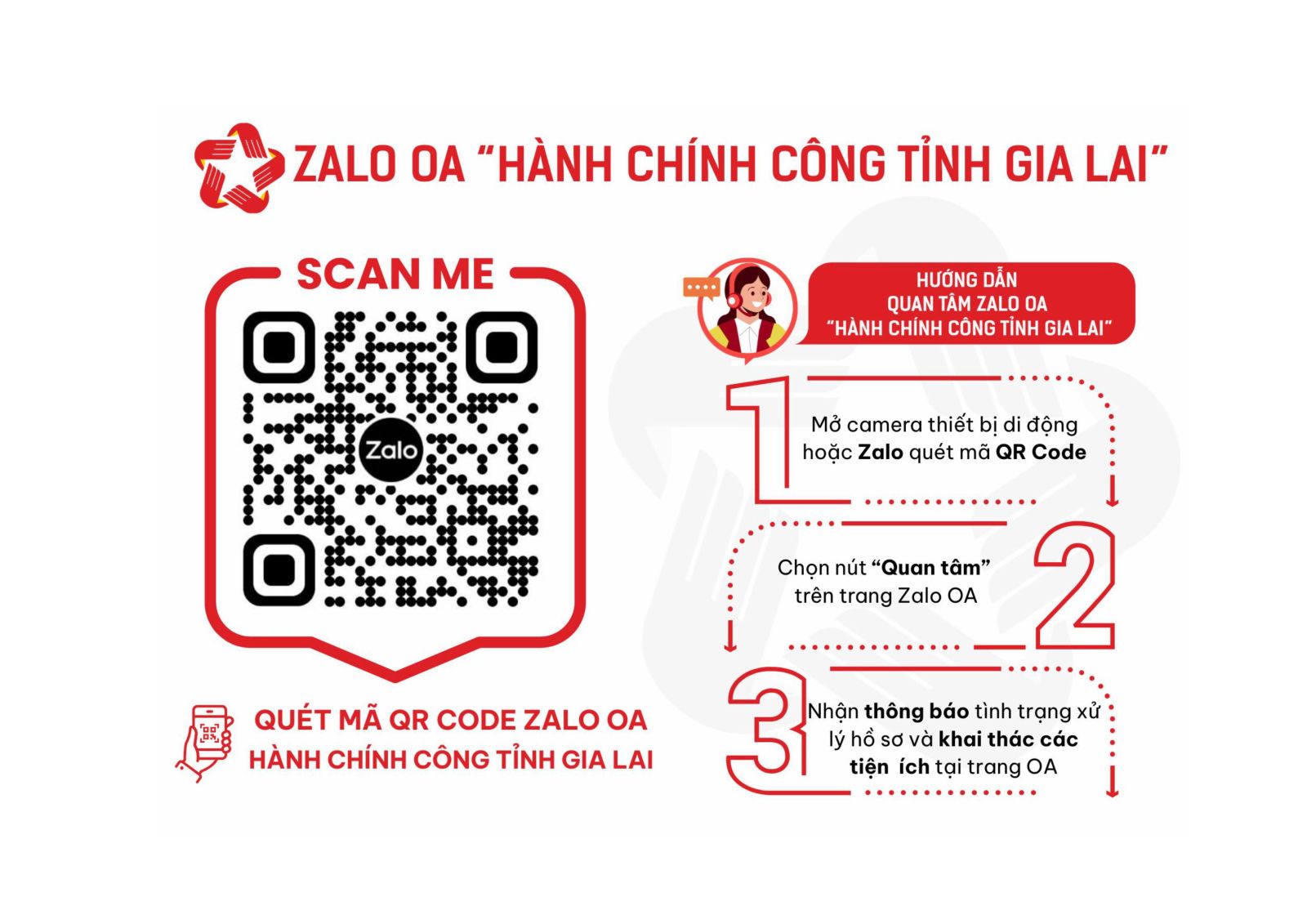 Quét mã QR Cổng Zalo OA “Hành chính công tỉnh Gia Lai” tại Trung tâm Phục vụ Hành chính công hoặc UBND cấp xã, phường.